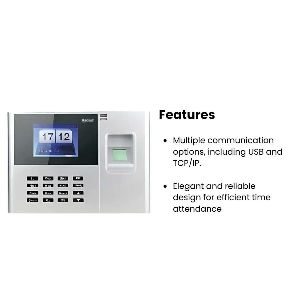 The B4+ Finger + Card + WiFi Time Attendance Machine is a new generation biometric device that makes attendance tracking and access control in the organizations easier. This is the latest terminal that has a bright 2.8 Inch TFT color screen; not only make it easy to operate but also makes it beautiful to be displayed on your working desk. It is designed to offer strong functionalities to handle a higher number of fingerprints, cards, or PINs, up to 3,000 – perfect for all types of businesses. This scalability also makes the B4+ capable of serving a wide customer base, ranging from small businesses to big corporations. Another great advantage of B4+ is the possibility of dual attendance searching based on the fingerprint and card records. This makes it easier for the employees to log their attendance in a fashion that comes in as convenient to them as possible, making it a good user experience. Also, for back up power it comes with an accurate built-in backup battery which can power the device for 4-5 hours in the event of a power failure. This makes it convenient since it can support operations without external power supply, which is especially vital for organizations located in areas with unstable power supply. Due to the fact that the B4+ has numerous ways to connect, the data transferring and downloading can be done via TCP/IP as well as, or USB downloading. Such opportunity facilitates data transfer and provides administrators with real time attendance logs without the need for input from the administrators. Mobile application integration feature is also available in the device to let users access attendance reports and logs from their mobile devices. This remote accessibility enhances convenience and guarantees businesses can continue efficient operations even when working remotely. Organizing a record is simple and straightforward because the system automatically generates attendance reports in PDF and CSV formats. This capability also saves time and reduces the chance of violating corporate policies and government regulations. Also, the B4+ has a poor setup as compared to others because it doesn't require web access or proper computer setup. The system is easy to use without special integration required. Besides the basic attendance tracking the B4+ offers options such as a leave management, It offers admins the option to create 1-day, weekly, monthly and vouchers etc, helping organizations efficiently track overall employee attendance and manage absences and any documents. The device also has additional access control features that can help protect modern work places. The sleek design of the B4+ allows it to blend in well with standard office designs And the product's robust functionality makes it a valuable operational asset. Our vision at Radiumbox is to give our customers the best experience when it comes to their devices. Our customer support is available to assist in case you have any issues regarding installation or using our product.