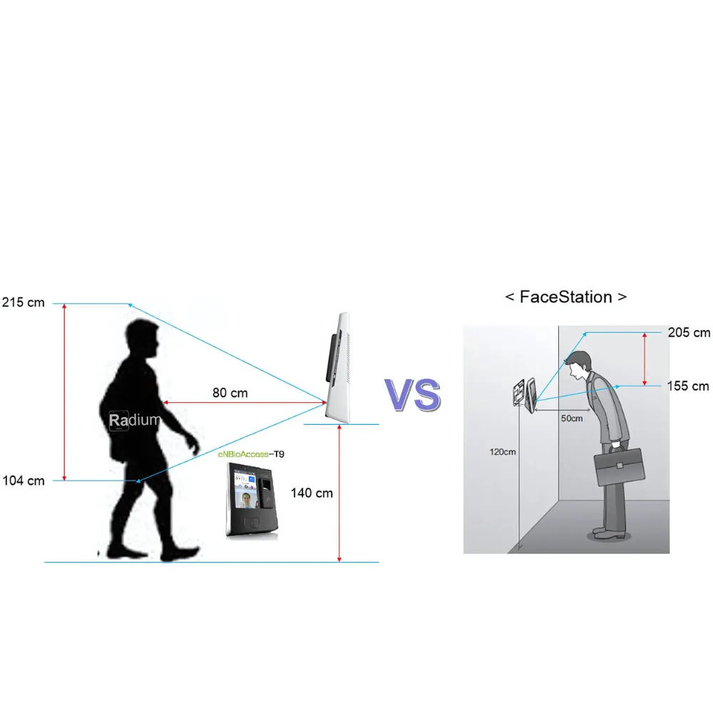 eNBioAccess T9 Biometric Access Control Systems are highly developed that offer facial and fingerprint scanning. It has an auto-tilt camera that turns according to the user’s height for convenient self-surveillance. Equipped with two cameras – IR and RGB, the device ensures high performance even in low illumination. It has a matching Fingerprint Verification Competition (FVC) and live fingerprint recognition technology for security against spoofing, with a 5-inch color touch screen LCD. It provides a user-friendly interface for easy interaction with face, fingerprint, card, and PIN options. In terms of capability of storage enrollments, eNBioAccess T9 supports 10000 faces and 250000 fingerprints as well as efficient recording implementations making it a wonderful solution for any security organizational security program. Buy the eNBioAccess T9 at the lowest price in the market from Radium Box.